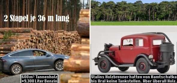 Tesla will 1 mio. Tesla/Jahr in die BRD pumpen = 39 km² Wald-Vernichtung/Jahr für Straßen und Parkplätze plus 600 m³ Holz für Strom-Erzeugung, egal ob Tesla oder Holz-Vergaser wie Stalins Sil und
